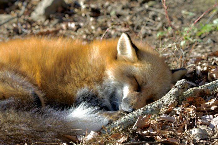 11月の終わりにしては暖かい日だったので、キツネたちも園内でお昼寝をしていました。近寄ると、噛まれる危険があるので、望遠レンズを持っていって正解だったな~という所感です。